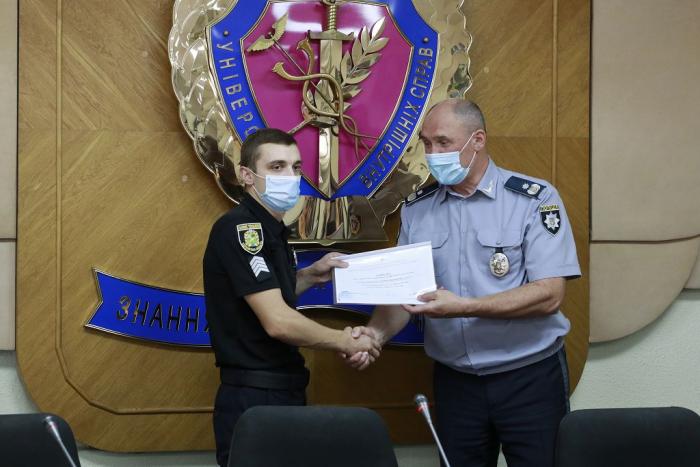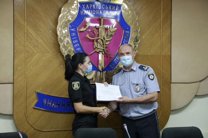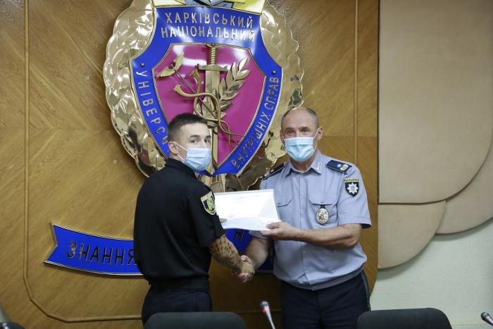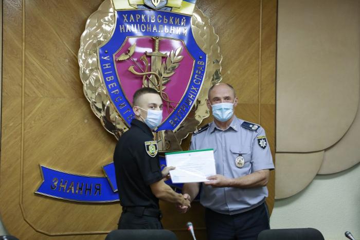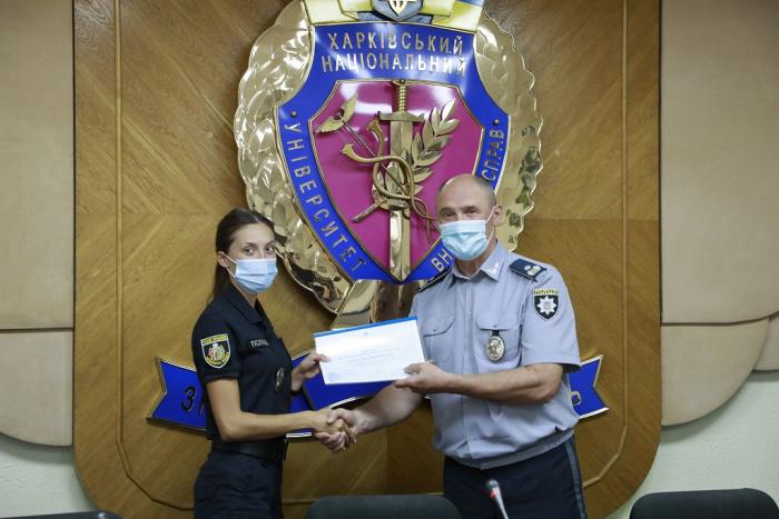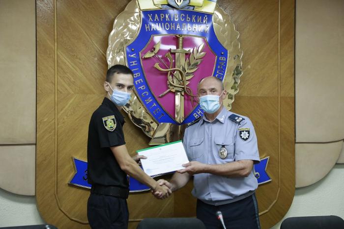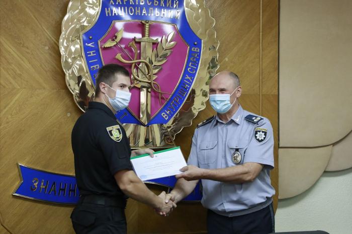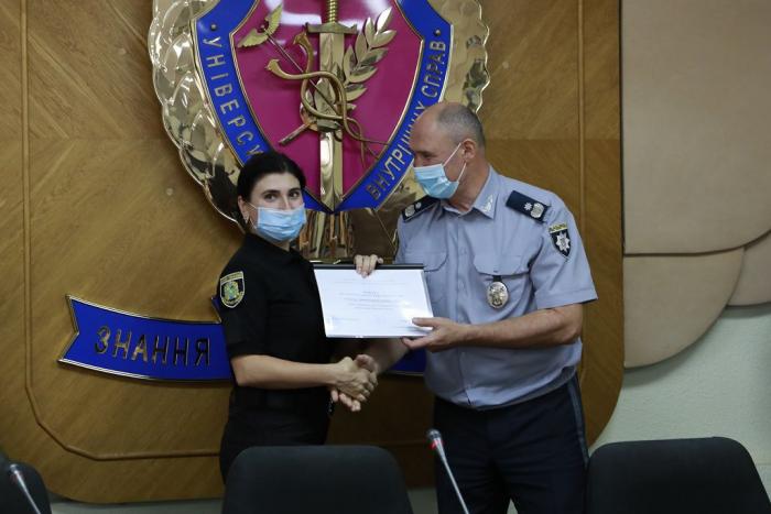 Довідки про успішне завершення навчання слухачам урочисто вручив ректор університету генерал поліції третього рангу Валерій Сокуренко. Вітаючи випускників, він зазначив: «Ви отримали знання та навички, які допоможуть вам у професійній діяльності. Гідно несіть службу в лавах Національної поліції України, захищаючи права та свободи громадян! У своїх діях завжди керуйтеся законом! Служіть так, щоб вас поважали люди та оберігав Господь Бог!».