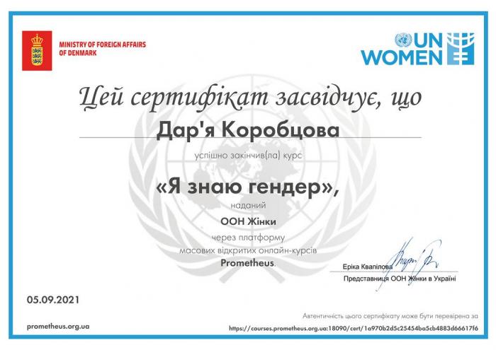 Серія онлайн-курсів містила багато корисного матеріалу щодо практичних знань пов'язаних із правовим забезпеченням гендерного рівноправ'я, включаючи міжнародні нормативно-правові акти, що регулюють відносини пов'язані з гендреним рівноправ'ям, а також із важливістю комунікації та толерантності для забезпечення співіснування у суспільстві. Ці знання є невід’ємною частиною викладання та вивчення навчальних дисциплін кафедри, і будуть застосовуватись у навчальному процесі. За результатом участі у дистанційних курсах працівники кафедри отримали відповідні сертифікати.
