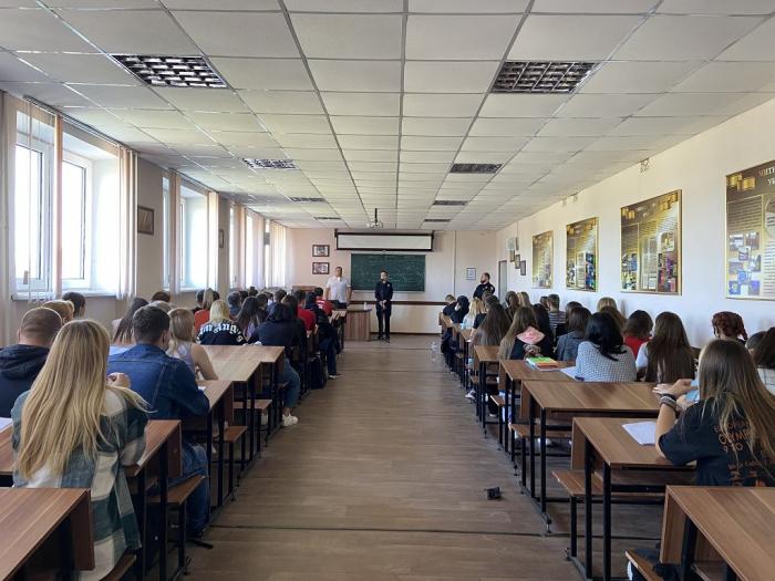 Максим Петухов розповів студентам про призначення, правове забезпечення, основні завдання та функції чергової частини Управління патрульної поліції, про організацію служби добового наряду чергової частини, про обов’язки чергового.