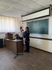 Доцент кафедри правоохоронної діяльності та поліціїстики факультету № 6 Микола Голуб спільно зі старшим інспектором з особливих доручень відділу зв'язків з громадськістю Управління патрульної поліції в Харківській області Максимом Петуховим і старшою інспекторкою з особливих доручень відділу чергової служби Катериною Резник провели для здобувачів освіти лекційне бінарне заняття на тему «Організація роботи чергових частин органів Національної поліції України».