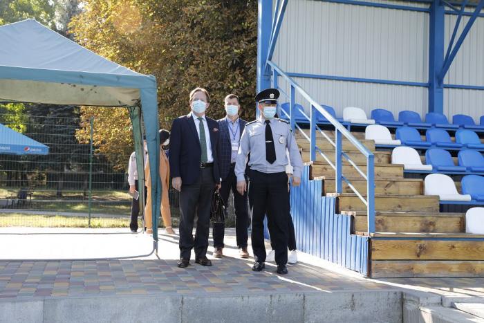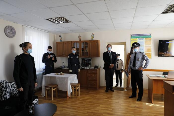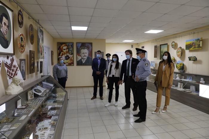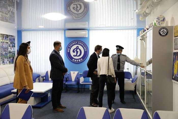 Проректор університету полковник поліції Сергій Бортник ознайомив гостей з матеріально-технічною та навчальною базою Харківського національного університету внутрішніх справ – Центром корекційної та психодіагностичної діяльності, навчально-тренувальним полігоном «Відділ поліції», ситуаційним тактичним полігоном, навчально-тренувальним центром боротьби з кіберзлочинністю та моніторингу кіберпростору, тактичним містечком «Перехрестя», вони також оглянули навчальні аудиторії та багатофункціональний комплекс «Динамо-Арена».