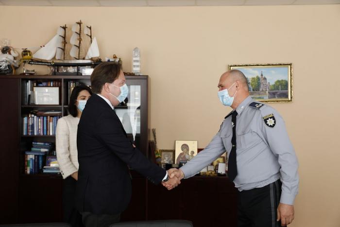 Харківський національний університет внутрішніх справ відвідав Координатор проєктів ОБСЄ в Україні посол Генрік Вілладсен. Гості зустрілися з ректором університету генералом поліції третього рангу Валерієм Сокуренком і першим проректором університету полковником поліції Дмитром Швецем.