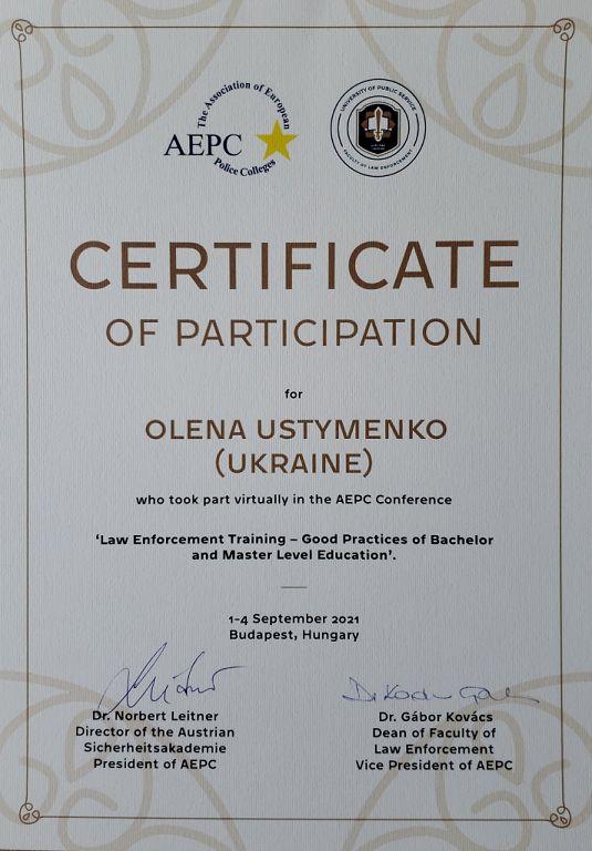 Представники Харківського національного університету внутрішніх справ взяли участь у міжнародній конференція «Підготовка правоохоронців – кращі практики навчання бакалаврів та магістрів», організованій Асоціацією європейських поліцейських коледжів, що відбулася на базі Університету державної служби м. Будапешт (Угорщина). Конференцію було проведено англійською мовою у змішаному форматі (очно та онлайн) із застуванням новітніх інформаційних технологій, зокрема платформи MicrosoftTeams.