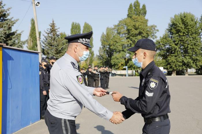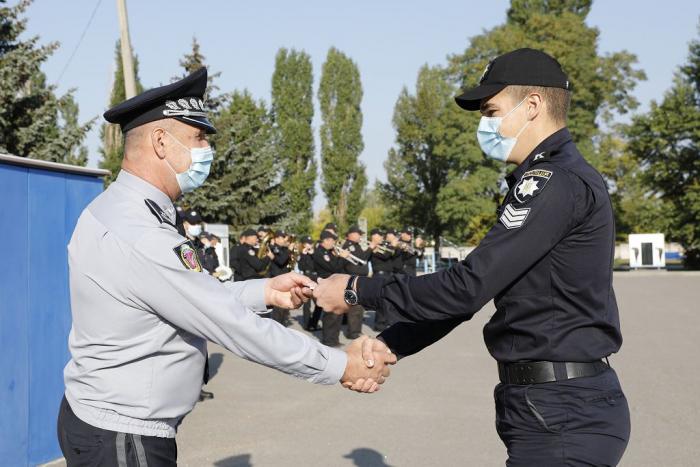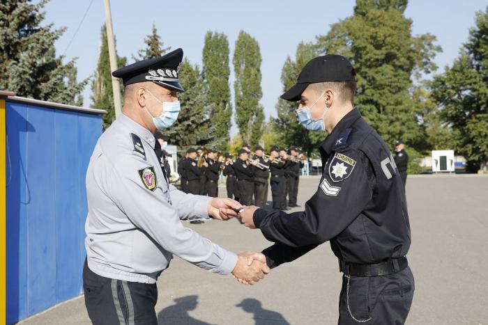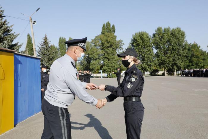 Вручив погони та побажав нових досягнень у навчанні та службі ректор університету генерал поліції третього рангу Валерій Сокуренко.