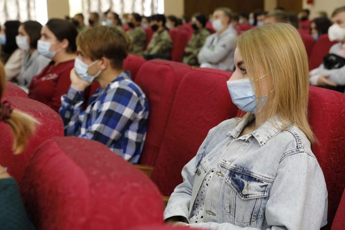 Під час спілкування зі студентами Віктор Шапошник ознайомив аудиторію з особливостями коронавірусної інфекції, із тим, як вона вражає людський організм, розповів про особливості вакцин, якими щеплюються українці, та про переваги вакцинування, навівши результати статистики. Також він відповів на запитання аудиторії.