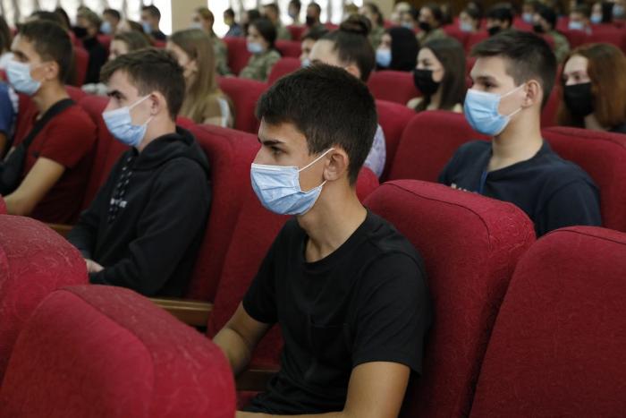 Ректор Харківського національного університету внутрішніх справ Валерій Сокуренко, проректори Сергій Бортник та Анатолій Клочко разом із представником Департаменту охорони здоров’я Харківської обласної державної адміністрації Віктором Шапошником провели зустріч зі студентами вишу. Обговорювалися питання профілактики та здійснення запобіжних заходів з протидії поширення коронавірусної інфекції.