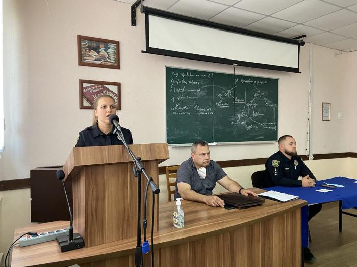 Катерина Різник ознайомила студентів із правовими підставами діяльності чергової служби Управління патрульної поліції, а також служби ІТП «Цунамі», працівники якої у цілодобовому режимі здійснюють прийняття та реєстрацію повідомлень про правопорушення та інші події за допомогою автоматизованого робочого місця оператора лінії «102». Вона звернула увагу здобувачів освіти на значенні оперативного реагування патрульної поліції на випадки правопорушень, звернення громадян, постановки завдань нарядам патрульної поліції, проведенні інструктажів.