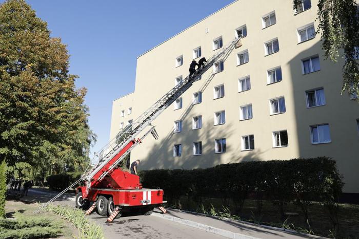 Мета заходу – навчання та перевірка дій особового складу університету у випадку виникнення пожежі та відпрацювання підрозділами ДСНС плану ліквідації надзвичайної ситуації. За легендою, до комендатури надходить повідомлення про займання на п’ятому поверсі в кімнаті гуртожитку. Черговий комендант викликав підрозділи ДСНС, а черговому підрозділу університету було дано команду «Пожежа». Черговий підрозділ спільно із комендантом корпусу, пожежними командами та добовим нарядом евакуювали особовий склад, у тому числі й студентів, із всіх приміщень гуртожитку. Приїхавши на місце події, підрозділи ДСНС встановили автомобілі на вододжерела, колінчатий підйомник, проклали магістралі та робочі рукавні лінії. З вікна п’ятого поверху було евакуйовано курсантів за допомогою колінчатого підйомника. Задимлені приміщення оглянули представники газодимозахисної служби.