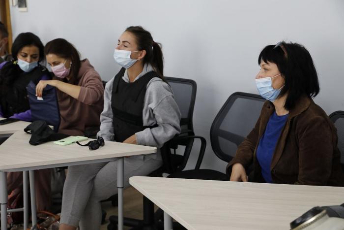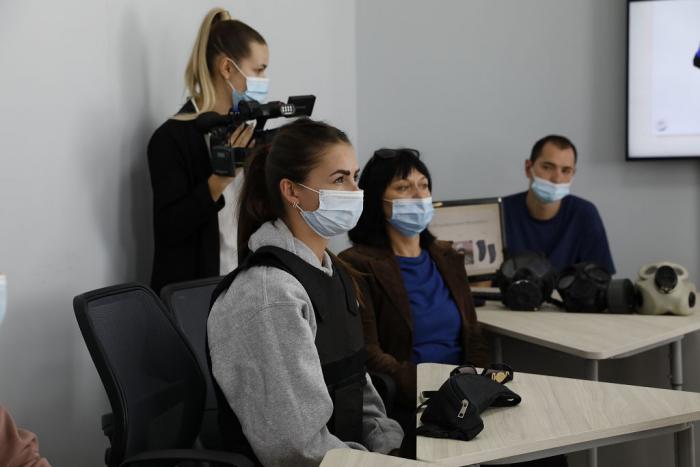 Перше заняття тренінгу «Безпека журналіста під час масових заходів та в зоні бойових дій» пройшло на навчально-тренувальному полігоні університету «Науковий парк». Журналісти опановували правила роботи у надзвичайних умовах, вчилися користуватися захисним спорядженням (бронежилетом), використовувати підручні засоби для самооборони, а також отримали корисні поради щодо того, як, працюючи у зоні масових заворушень або обстрілів, правильно поводитися та організувати свою роботу тощо.