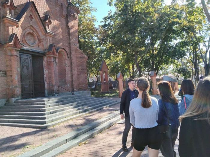 Під час екскурсії студенти дізналися багато цікавих історій – наприклад, у якого сумського магната спробували вперше тістечко «Наполеон», годинник якої будівлі є своєрідним братом-близнюком відомого «Біг-Бена» та ін.