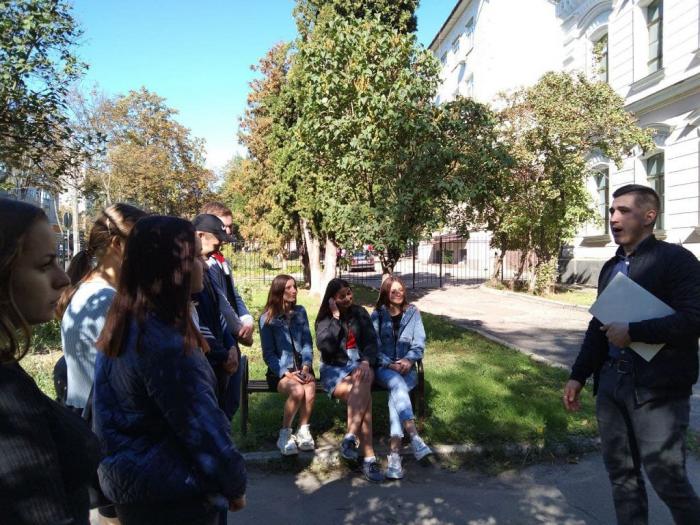Екскурсоводом виступив Володимир Луговий, який познайомив студентів зі старим кварталом міста, вулицею Троїцькою, яка була розбудована наприкінці ХІХ ст.