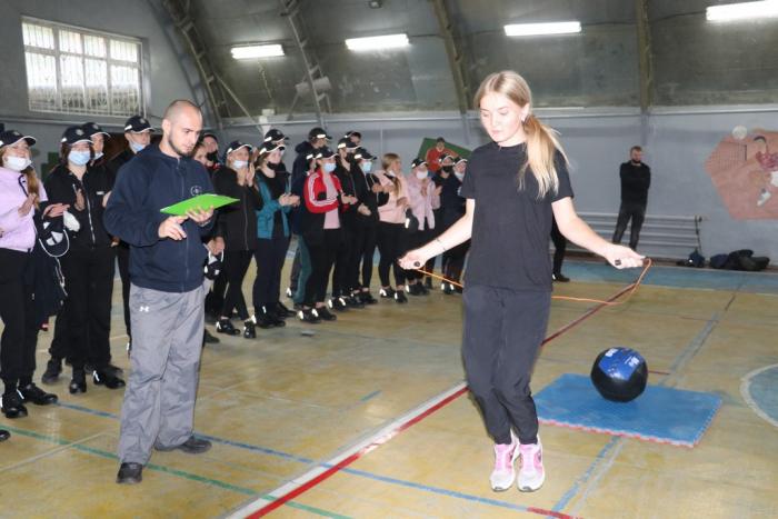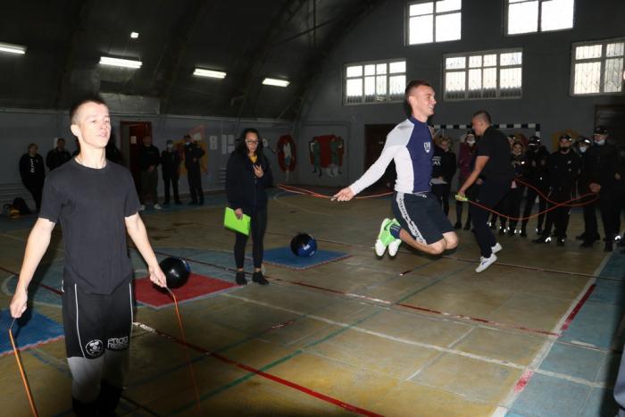 Три команди курсантів змагалися у таких видах спору: стрибки зі скакалкою, SiTups, присідання, берпі, зворотні берпі, станова тяга та випади. Виступи оцінювали тренери спортивного клубу. Тренер Дмитро Попович для присутніх провів майстер-клас із самооборони Крав-мага.
