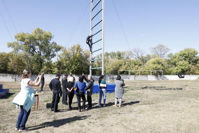 На спеціальній смузі перешкод журналісти перевірили свою психофізичну витривалість – піднімалися на певну висоту й долали перешкоди.