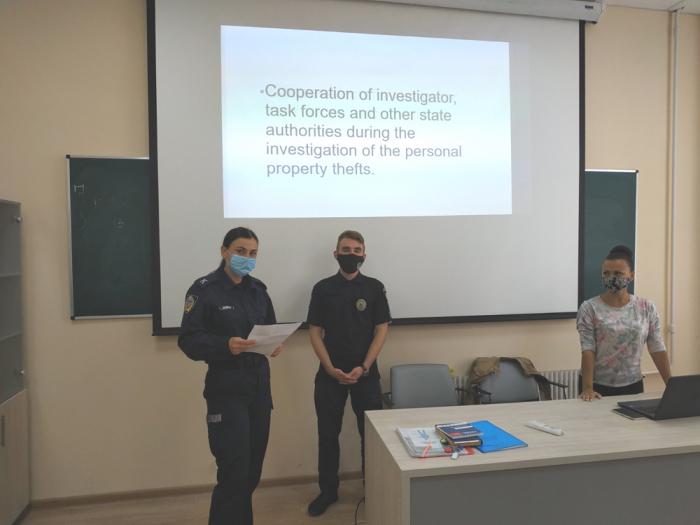 Особливу увагу було приділено значенню юридичної термінології в різних системах права та психологічним особливостям спілкування зі свідками. У процесі спілкування англійською мовою виникало багато запитань, курсанти були зацікавлені темою заняття.