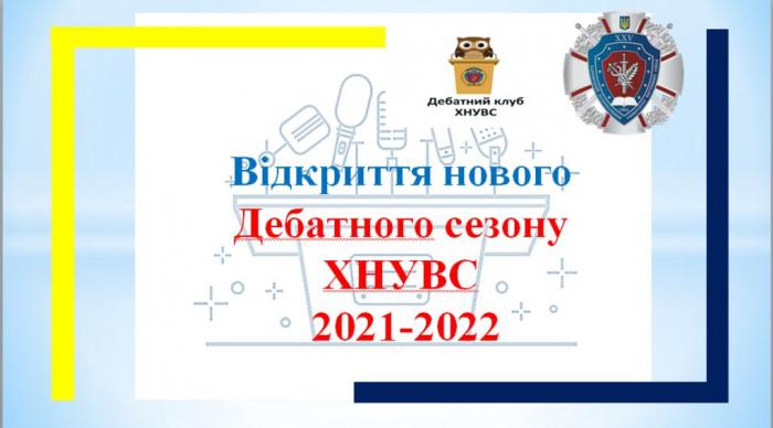 У Харківському національному університеті внутрішніх справ відбулося відкриття Нового дебатного сезону 2021-2022 рр. і презентація Дебатного клубу ХНУВС. На відкритті заходу помічниця ректора з гендерних питань Оксана Цукан підкреслила важливість функціонування Дебатного клубу в університеті для курсантсько-студентської молоді. Спікером заходу виступив тренер Федерації Дебатів України, багаторазовий переможець Всеукраїнських і Міжнародних дебатних турнірів Дмитро Щербина. Він підкреслив, що участь у Дебатному клубі дасть змогу розвинути критичне мислення, сприятиме оволодінню мистецтвом красномовства, виробленню об'ємного бачення тієї чи іншої проблеми.