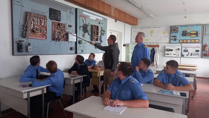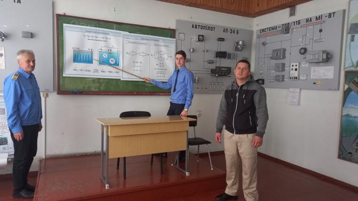 Викладачем циклової комісії авіаційного і радіоелектронного обладнання Сергієм Верменичем та інженером з технічного обслуговування, ремонту та діагностики авіаційної техніки авіаційно-технічної бази Кременчуцького льотного коледжу ХНУВС Олександром Деркачем для курсантів 4 курсу спеціальності «Авіоніка» було проведено бінарне заняття з навчальної дисципліни «Електропостачання ПС» за темою «Система енергетики постійного струму вертольоту Мі-8Т».