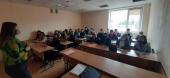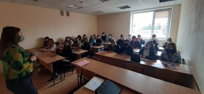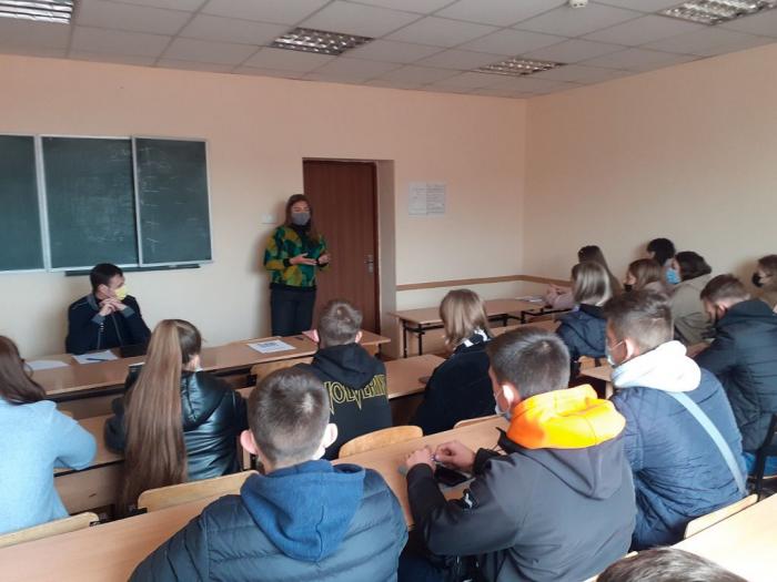 Олена Олександрівна ознайомила студентів з основними завданнями Служби зайнятості, всі відділення якої працюють за єдиною схемою надання послуг. Клієнти можуть звернутися до будь-якого центру зайнятості та отримати всі передбачені законодавством соціальні послуги, пов’язані з працевлаштуванням. У службі зайнятості створена уніфікована оперативна база вакансій, шукачів роботи та можливостей проходження професійного навчання по всій країні. Це дозволяє розширити зону пошуку роботи для безробітних не тільки в межах району чи області, а й держави в цілому. Служба зайнятості постійно модернізується та розвивається, дбає про вдосконалення соціального захисту українських громадян від безробіття. Приділили увагу лектори і взаємодії Служби зайнятості з суб’єктами господарювання.