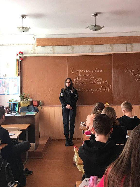 Під час бесіди вони обговорили такі актуальні теми, як шкідливість вживання алкогольних і тютюнових виробів, відповідальність за розпивання спиртних напоїв на вулиці, стадіоні, у сквері, парку, усіх видах громадського транспорту і за появу в нетверезому стані в громадських місцях. Особливу увагу курсантки звернули на позитивні аспекти здорового способу життя. Старшокласники були запрошені до щотижневих соціальних проєктів Школи наукового лідерства.