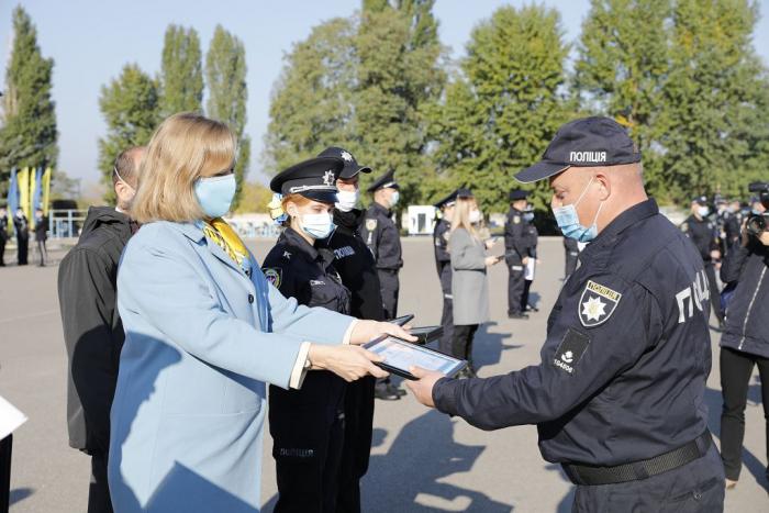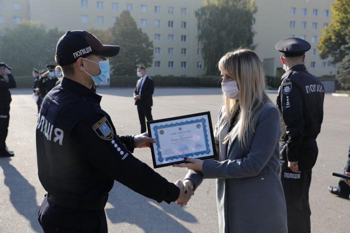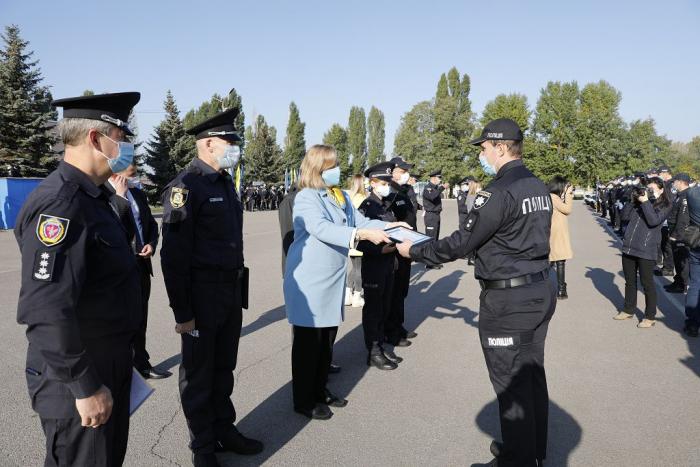 Заступниця Міністра побажала випускникам бути чесними, відкритими, ніколи не зупинятися у своєму особистісному розвитку, з гідністю нести високе звання поліцейського офіцера громади.