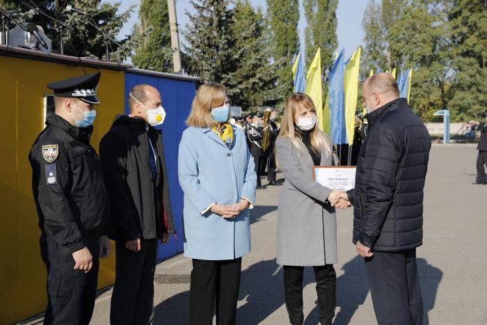 Відбулася церемонія вручення свідоцтв випускникам. Сертифікати учасників проєкту також отримали голови семи територіальних громад – Балаклійської, Зміївської, Олексіївської, Вільхівської, Донецької, Безлюдівської та Слобожанської. Їх вручили заступниця Міністра Катерина Павліченко, повірена у справах Посольства США в Україні Крістіна Квін та заступник Голови Національної поліції Олександр Фацевич.