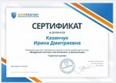 За результатами участі у вебінарах Ірина Казанчук отримала сертифікат. Знання і навички здобуті під час навчання, сприятимуть підвищенню професійного рівня та застосовуватимуться у науково-дослідній діяльності.