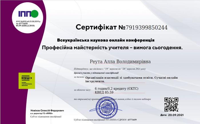 Під час конференції її учасники пройшли тренінг із підвищення кваліфікації за темою «Організація взаємодії зі здобувачами освіти. Сучасні онлайн інструменти», що проводився платформою Інститутів післядипломної педагогічної освіти «ІППО» м. Київ.