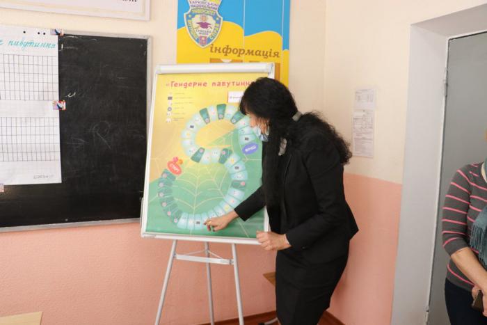 Професорка кафедри юридичних дисциплін Сумської філії ХНУВС Наталія Горобець разом із провідною фахівчинею Регіонального центру з надання безоплатної вторинної правової допомоги у Сумській області Наталією Поставською та практичною психологинею ГО «Сумське громадське коло» Оксаною Корсун провели для студентів 2 курсу бінарне заняття з навчальної дисципліни «Цивільне право та процес» у форматі інтерактивної гри «Гендерне павутиння».