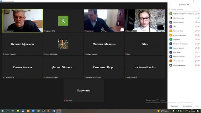 У рамках профорієнтаційної роботи заступник декана факультету № 6 Харківського національного університету внутрішніх справ Костянтин Свердлін та представники кафедри правового забезпечення господарської діяльності – доцентки кафедри кандидатки юридичних наук Ірина Василько, Дар’я Коробцова, старші викладачі кафедри кандидат економічних наук Сергій Матвєєв і кандидат юридичних наук Артем Добровінський зустрілися онлайн із учнями 11-х класів Харківської гімназії № 23 Харківської міської ради.