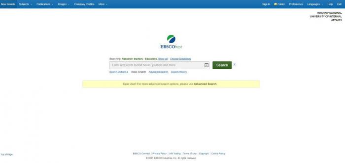 Харківський національний університет внутрішніх справ отримав тестовий доступ до баз даних EBSCO, який триватиме до 31 грудня 2021 року.