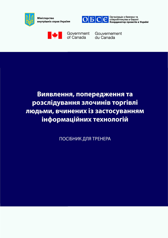 Підготовку навчально-методичних матеріалів було організовано Координатором проектів ОБСЄ в Україні в рамках проекту «Посилення кримінального переслідування торгівлі людьми з використанням інформаційних технологій в Україні» за фінансової підтримки уряду Канади.
