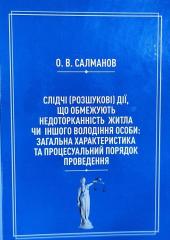 Слідчі (розшукові) дії, що обмежують недоторканність житла чи іншого володіння особи: загальна характеристика та процесуальний порядок проведення: Салманов О.В., монографія. Харків: Факт, 2021. 283 с. [Серія «Бібліотека слідчого і детектива: проблеми кримінального процесу»].