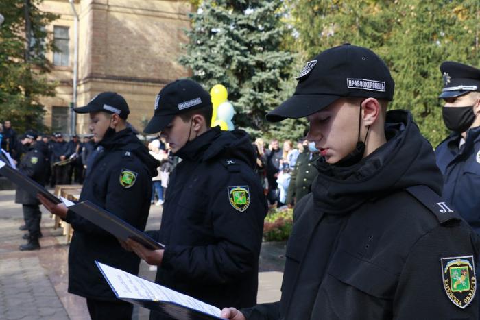 95 юнаків і дівчат – вихованців Ліцею «Правоохоронець» склали Присягу ліцеїста. Символічно, що захід відбувся напередодні державного свята Дня захисників і захисниць України.