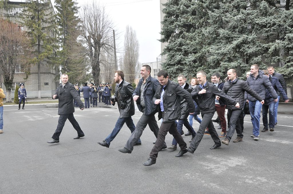 Під супровід оркестру Харківського національного університету внутрішніх справ колишні однокурсники пройшли стройовим кроком.