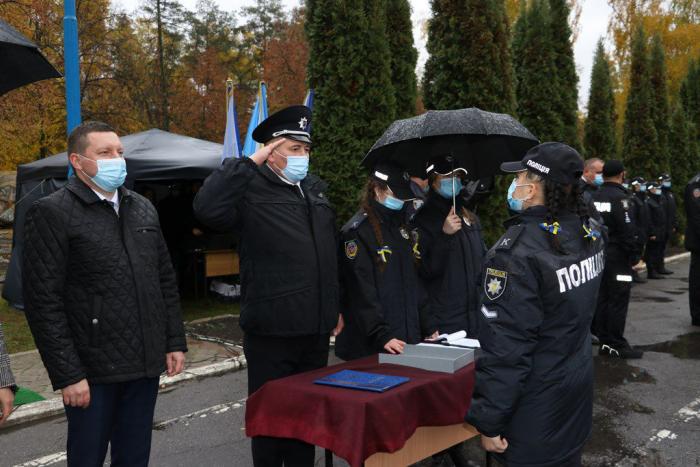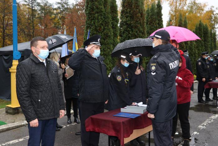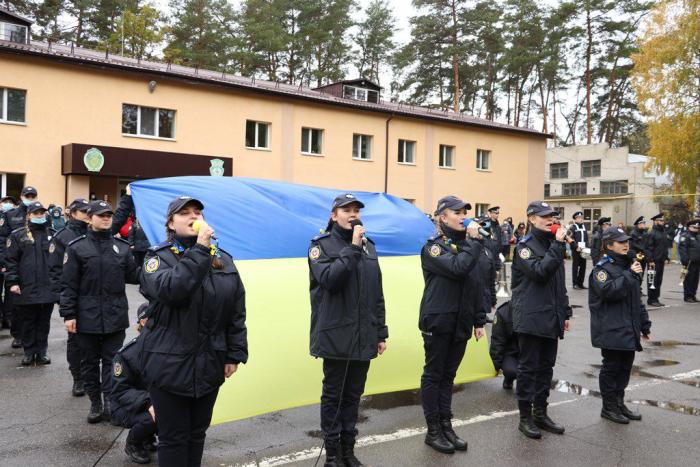 75 майбутніх фахівців підрозділів превентивної діяльності Національної поліції України присягнули вірно служити українському народу та отримали жетони поліцейських.