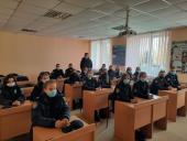Доцентка кафедри адміністративного права та процесу факультету № 1 Марина Джафарова провела бінарне заняття для курсантів другого курсу факультету № 2 з навчальної дисципліни «Адміністративне право» за участю дізнавача сектору дізнання відділення поліції № 2 Сватівського районного відділу поліції ГУНП в Луганській області лейтенанта поліції Євгенія Рєзнікова.