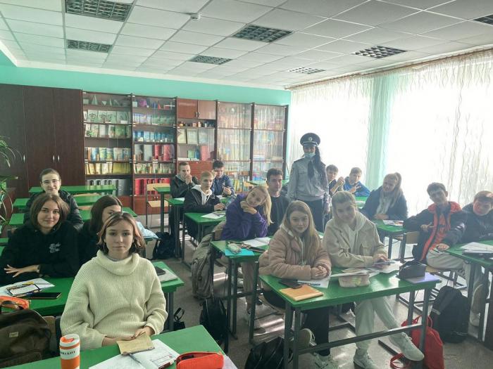 Викладачка кафедри кримінального процесу та організації досудового слідства факультету № 1 ХНУВС Катерина Горбунова зустрілася із учнями Південного ліцею Південної міської ради Харківського району Харківської області та провела з ними бесіду на тему «Вступ на навчання до ХНУВС». Під час зустрічі школярі були ознайомленні з правилами вступу, умовами навчання, матеріально-технічною базою, науково-педагогічним складом університету та переліком спеціальностей, які можна здобути при навчанні у ХНУВС.