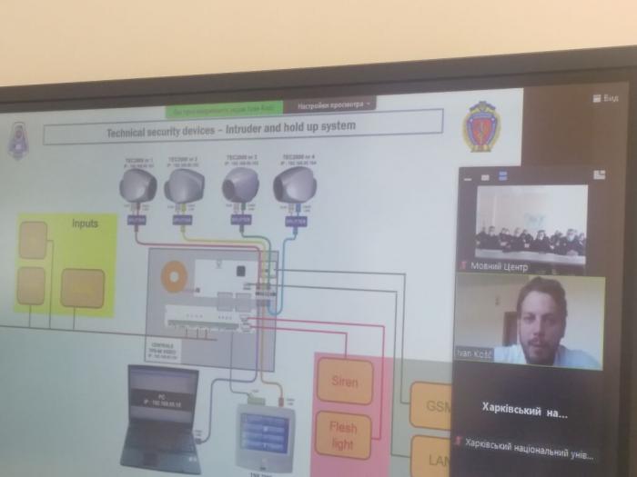 Старша викладачка кафедри іноземних мов факультету № 1 ХНУВС Лариса Сазанова та викладач цієї ж кафедри Артем Білоусов разом із доктором філософії та права Академії поліцейських сил у Братиславі (Словаччина) Іваном Кощ провели для курсантів четвертого курсу факультету № 1 бінарне заняття з іноземної мови професійного спрямування на тему «Технічні засоби безпеки» з використанням платформи Zoom.