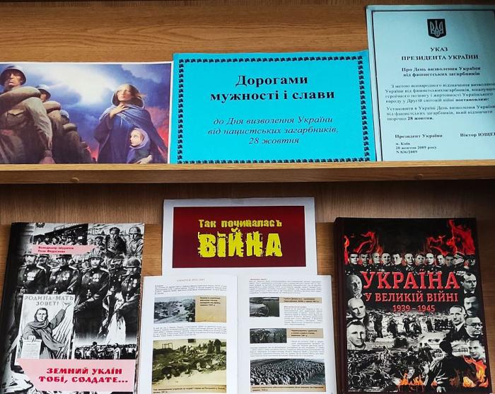 До Дня визволення України від нацистських загарбників наукова бібліотека Харківського національного університету внутрішніх справ підготувала розгорнуту книжково-ілюстративну експозицію «Дорогами мужності і слави».