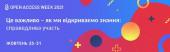 З 25 по 31 жовтня 2021 року в світі проходить ХІХ Міжнародний тиждень відкритого доступу. Гасло заходу цього року: «Це важливо – як ми відкриваємо знання: справедлива участь», мета якого – об'єднання знань та мобілізація громадянського суспільства задля забезпечення вільного та рівного доступу до освітніх ресурсів і результатів наукових досліджень між дослідниками з розвинених країн і країн, що розвиваються. Особливої ваги це питання набуває в умовах пандемії та закритих кордонів між країнами, що актуалізує суспільну потребу у відкритій науці.