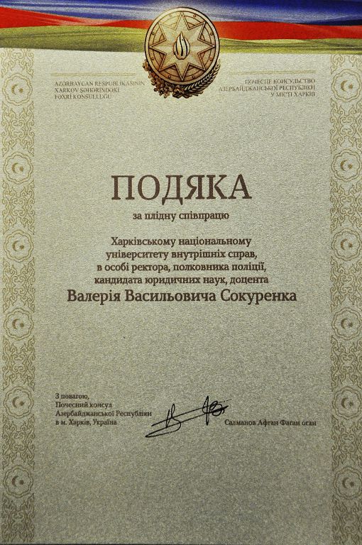 Під час заходу Афган Салманов вручив Подяки за плідну співпрацю харківським вишам, серед яких і Харківський національний університет внутрішніх справ.