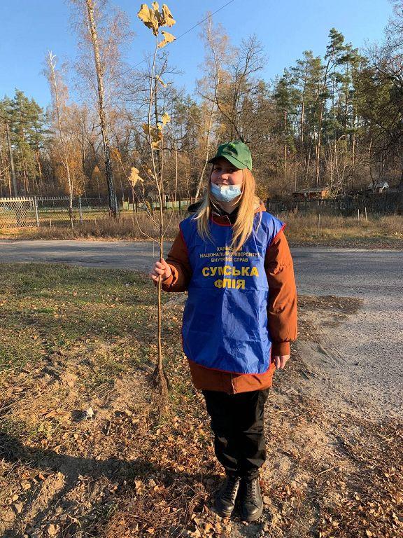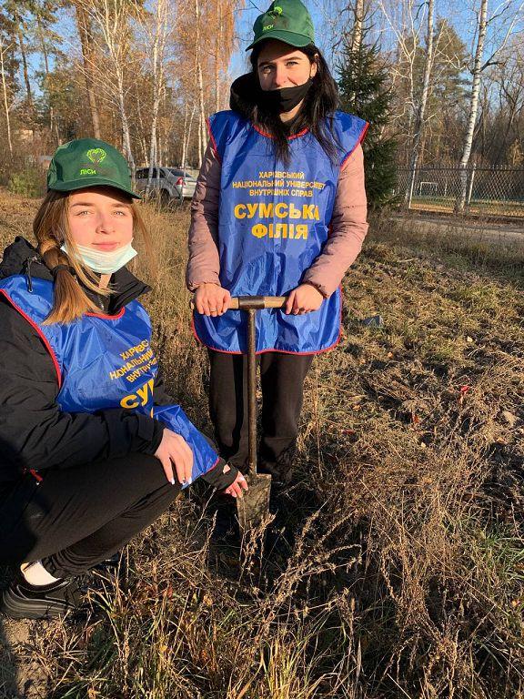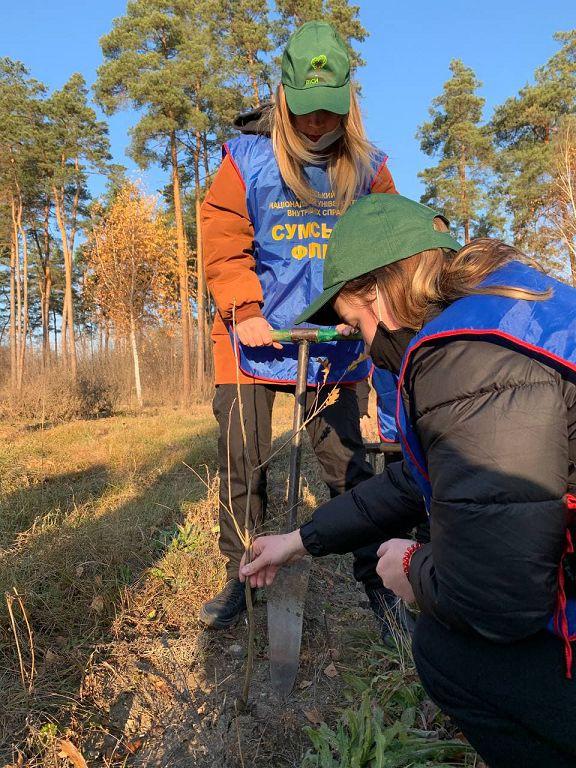 Зважаючи на актуальність екологічної проблеми сьогодення та в рамках акції «Створюємо ліси разом» курсантки створили новий дубовий ліс на місці закинутої території, а подаровані організаторами садженці дуба звичайного курсантки висадили на території закладу Сумської філії ХНУВС. Захід пройшов із дотриманням карантинних вимог.