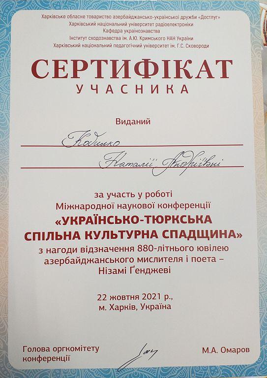 Доценти кафедри соціально-гуманітарних дисциплін факультету № 6, кандидатка філологічних наук Наталія Кобилко та кандидат історичних наук Віталій Заборовський взяли участь у Міжнародній науковій конференції «Українсько-тюркська спільна культурна спадщина» з нагоди відзначення 880-літнього ювілею азербайджанського мислителя і поета – Нізамі Ґенджеві, яка відбулася в Харківському національному університеті радіоелектроніки за сприяння Посольства Азербайджанської Республіки в Україні та Посольства Республіки Туреччина в Україні. Захід об’єднав науковців з України (Харків, Київ, Дніпро, Івано-Франківськ, Черкаси, Старобільськ), Азербайджану, Туреччини й Казахстану.