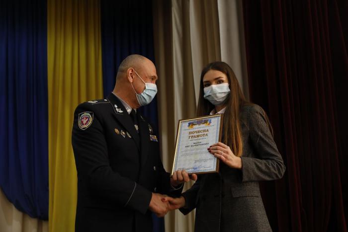 Почесну грамоту Союзу юристів України – доценту кафедри криміналістики, судової експертології та домедичної підготовки факультету № 1 підполковнику поліції Тетяні Матюшковій.
