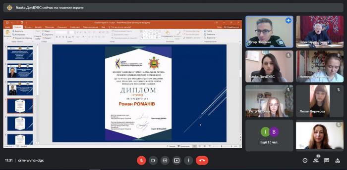 У конкурсі взяли участь молоді науковці з юридичних закладів вищої освіти Дніпра, Житомира, Львова, Харкова і Чернігова. Оголошення результатів конкурсу відбулося у режимі онлайн за особистою участю ювіляра Олександра Миколайовича Джужи. Наукову статтю Романа Романіва на тему «Віктимологічна профілактика корисливих кримінальних правопорушень, вчинених з використанням комп’ютерних мереж» (науковий керівник доцент кафедри кримінального права і кримінології факультету № 1 Ксенія Юртаєва) організаційний комітет Конкурсу визнав найкращою та відзначив Дипломом І ступеня і грошовою винагородою. Інші учасники були відзначені цінними призами, дипломами і сертифікатами.