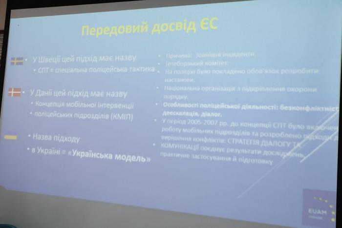 Старший групи із забезпечення громадської безпеки Консультативної місії Європейського Союзу в Україні Фернандо Магро Морос зазначив, що на теперішній час проведено вже шість таких тренінгів: «Наші очікування були високими, та результати їх перевершили. Справжнім викликом для вас стане ваша робота, і відповідальність за її виконання буде на ваших плечах. Я упевнений, що у вас все вийде, бо знаю, що ви найкращі».