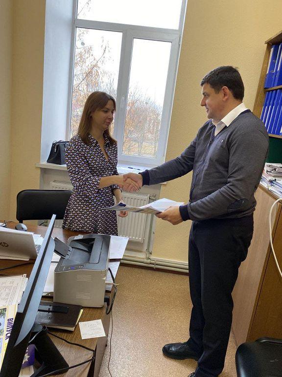 Доцент кафедри правоохоронної діяльності та поліціїстики факультету № 6 Харківського національного університету внутрішніх справ Володимир Стреляний зустрівся із керівницею відділу освіти, культури, молоді та спорту Солоницівської селищної ради Яною Грицай.