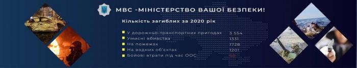Очільник правоохоронного відомства сказав, що за 8 років війни Україна втратила багато громадян. Але і на мирній території гинуть люди. За 2020 рік статистика жахлива, на дорогах загинуло 3554 особи, 1728 – загинуло під час пожеж, на воді – 1201. За 2020 рік загинули 7814 громадян України. В то й же час в зоні ООС втратили життя 50 захисників за цей же період.