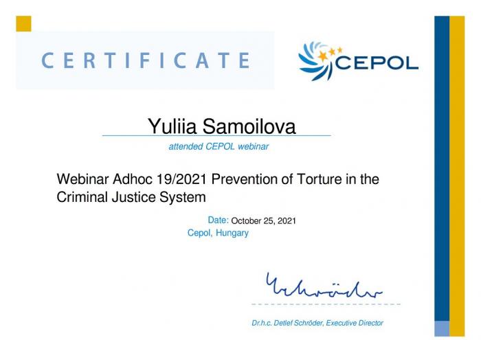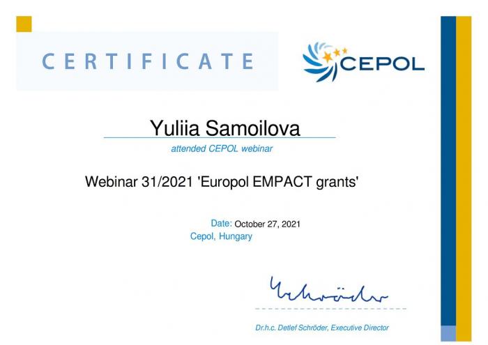 Так, доцентка кафедри гуманітарних дисциплін Сумської філії ХНУВС Юлія Самойлова взяла участь у вебінарах «Prevention of Torture in the Criminal Justice System» та «Europol EMPACT grants».