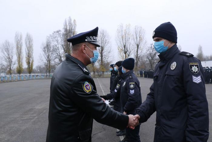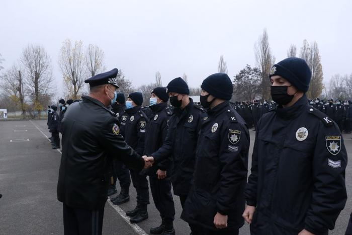 Під час проведення загальноуніверситетського розводу відбулося вручення погонів курсантам з нагоди присвоєння їм чергових спеціальних звань молодшого складу поліції. Молодь привітав та вручив погони ректор вишу генерал поліції третього рангу Валерій Сокуренко.