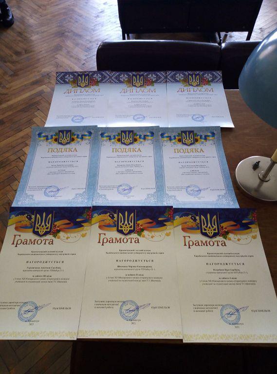 Переможцями І етапу ХІІ Міжнародного мовно-літературного конкурсу учнівської та студентської молоді імені Тараса Шевченка стали: І місце – Кіра Погребняк, ІІ місце – Марина Шевченко та ІІІ місце – Анастасія Горпинченко. Кіра Погребняк захищатиме честь КЛК ХНУВС на ІІ етапі конкурсу, що відбудеться в Полтаві.